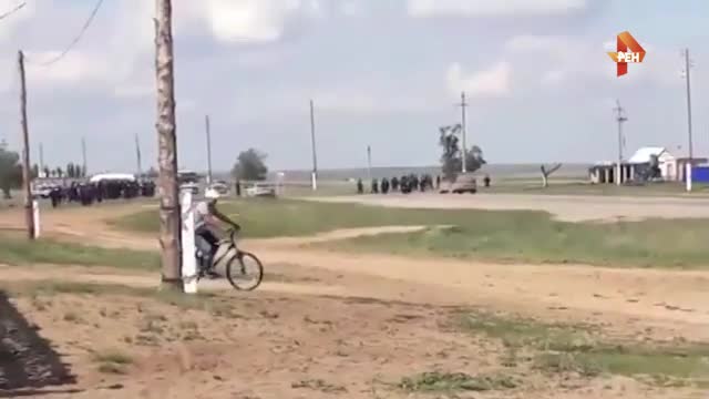 Появилось видео операции в Казахстане, в ходе которой силовики ищут подозреваемых в теракте. Над поселком Бестамак, расположенном близ Актобе, кружит вертолет.