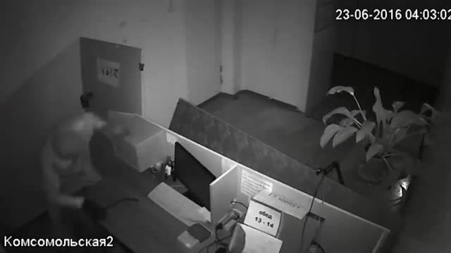 Грабитель, разгромивший офис ради сейфа с 3 тысячами рублей, попал на видео