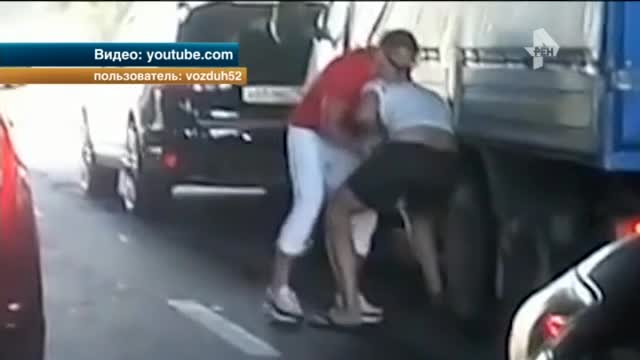 Разнимать драчунов никто не торопился. Максимум, на что решились очевидцы — это посигналить. Но звуки дебошира не останавливают.