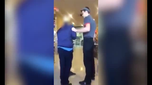 На видео, обнародованном в Сети, работник заведения вступил в конфликт с подростками. После этого он набросился на них, нанес несколько ударов и заставил мыть пол. По всей видимости, школьник пролил на пол напиток.