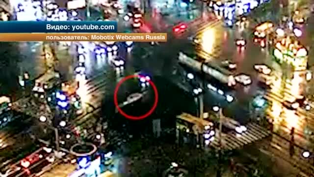 Авто, влетевшее в толпу пешеходов в Петербурге, попало на видео