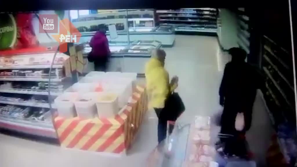 Был ли в руках нападавшего нож, разобрать трудно, однако в комментариях к записи сообщается, что "мужчина зарезал женщину в магазине".