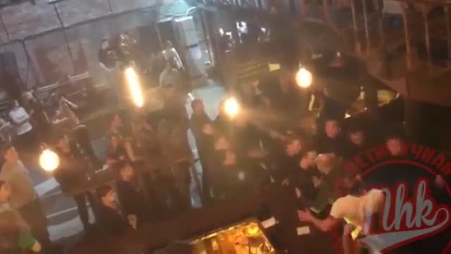 На кадрах ролика видно, как более 20 человек схлестнулись в ожесточенной противостоянии прямо в центре заведения. При этом охрана безуспешно пытается погасить конфликт и разнять драчунов. Массовая потасовка перемещается из одного угла клуба в другой и даже перетекает на второй этаж.