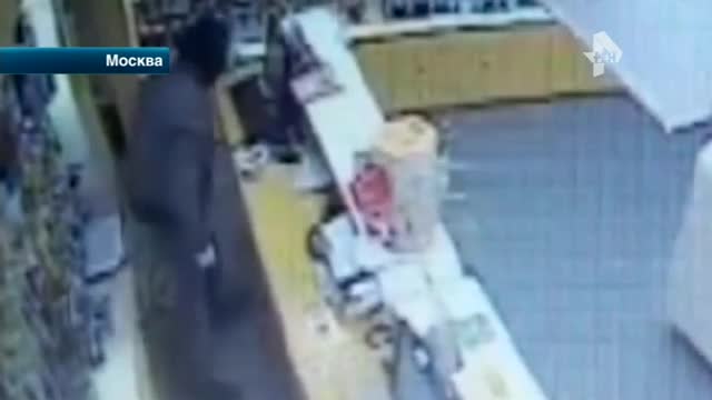 На кадрах видео видно, как грабители в капюшонах заходят в магазин, один из них достает пистолет и, угрожая кассиру, забирает деньги. На протяжении всего ограбления второй соучастник ни разу не повернулся в сторону кассы.