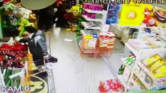 Камера запечатлела нападение разъяренного охранника "Дикси" на покупателя