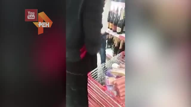 Сотрудники магазина заставили женщину разгрузить все продукты, которые она пыталась вынести.