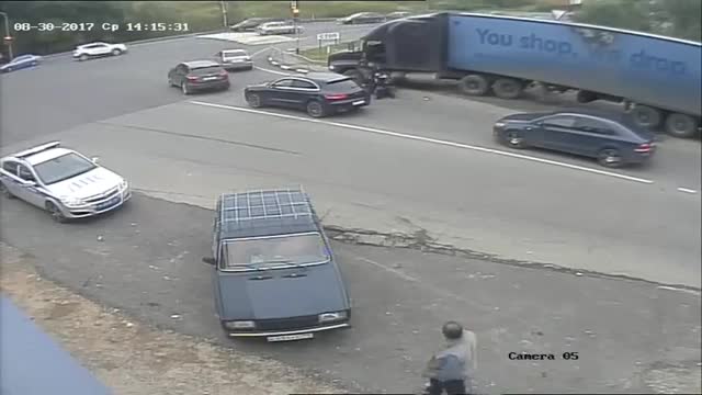 Мужчина ударил стража порядка дверью грузовика несколько раз.