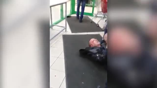Видео: агрессивный мужчина набросился на охранника супермаркета в Старом Осколе