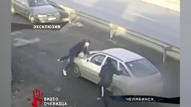 Местные СМИ публикуют видео из Челябинска, где водитель легкового автомобиля сбил толпу грузчиков, после чего протащил одного из них на капоте несколько десятков метров. После ЧП водитель приказал молчать, угрожая расправой, и скрылся с места происшествия, с парковки у автодороги Меридиан.