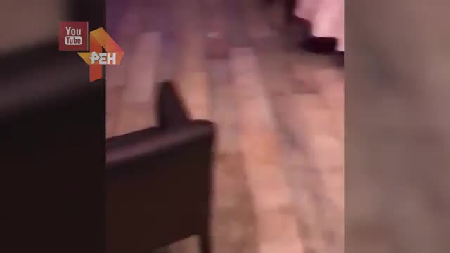На кадрах видны последствия происшествия в заведении: повсюду разбросана мебель, а на полу лежит тело одного из погибших в результате конфликта.