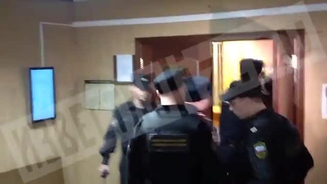 На кадрах видно, что в зал заседания Набиуллин вошел в сопровождении правоохранителей.