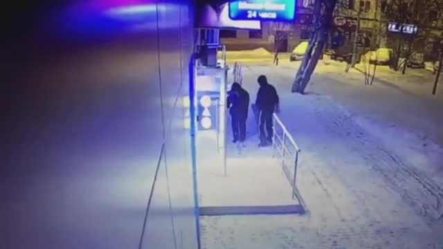 Как видно на кадрах ролика, опубликованного в Сети, преступники прихватили с собой "воздушный шар", после чего проследовали к круглосуточному банкомату.