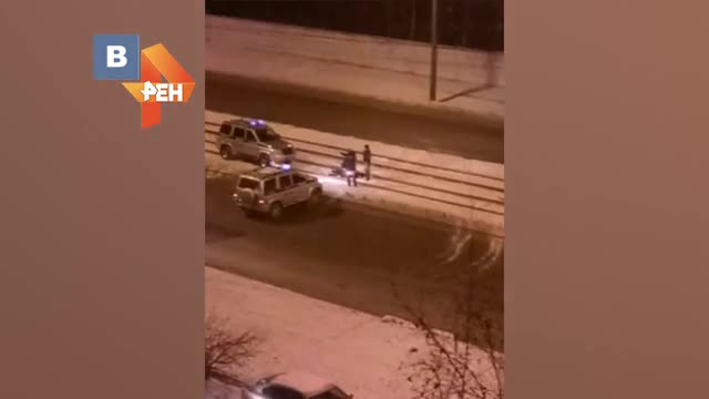 На кадрах видно, как сразу несколько автомобилей правоохранителей настигли злоумышленника на трамвайных путях.