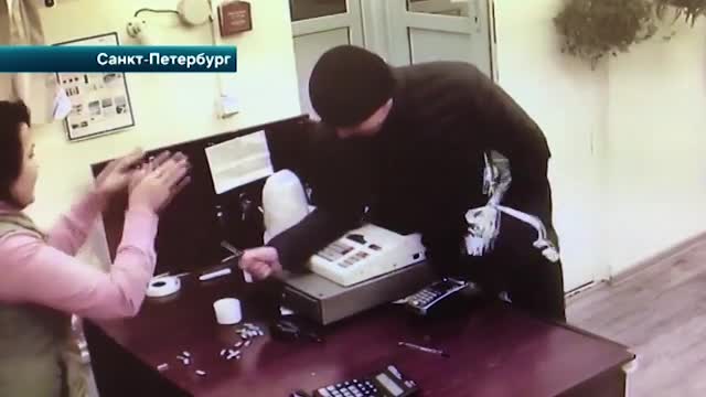 Барышня не сдается до последнего, даже собрав наличные в кулак, она не разжимает пальцы. Разбойник вычищает даже отдел с десятирублевыми монетами. Все равно разжиться удалось лишь двумя тысячами.