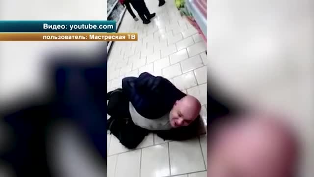 Сейчас кадры задержания очень буйного посетителя магазина "Пятёрочка". Охранникам удалось связать дебошира и сбить его с ног. Однако мужчина даже в таком положении, кажется, готов поквитаться с обидчиками.