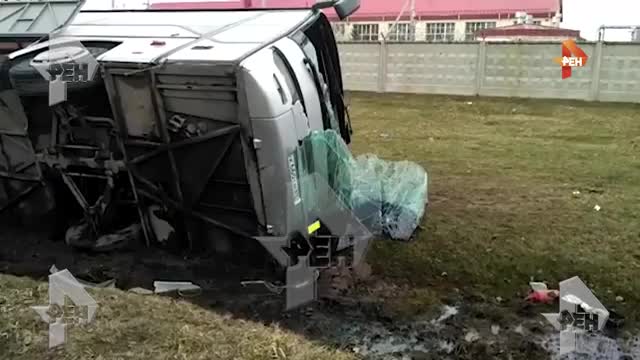 РЕН ТВ публикует первые кадры с места смертельного ДТП с автобусом в Тверской области