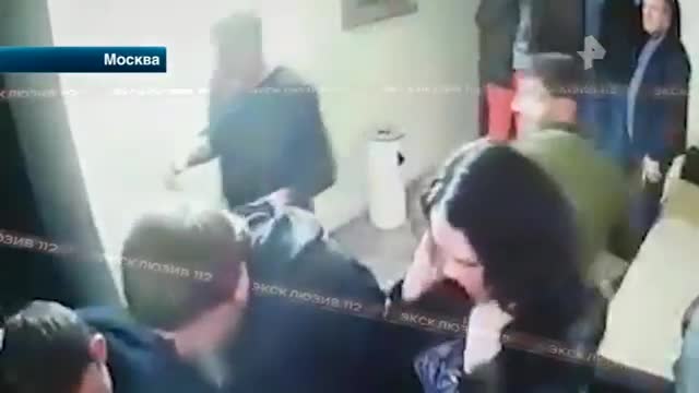 В Москве бывший сотрудник полиции расстрелял посетителя кафе. Драка началась в разгар застолья. Мужчины пытаются выяснить отношения с помощью кулаков, но когда один понимает, что соперник явно сильнее, достает травматический пистолет и открывает огонь.
