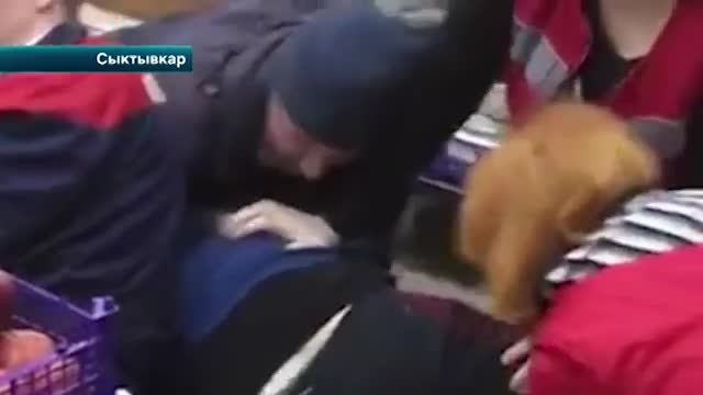 Видео: четыре сотрудника магазина пытались задержать могучего вора в Сыктывкаре