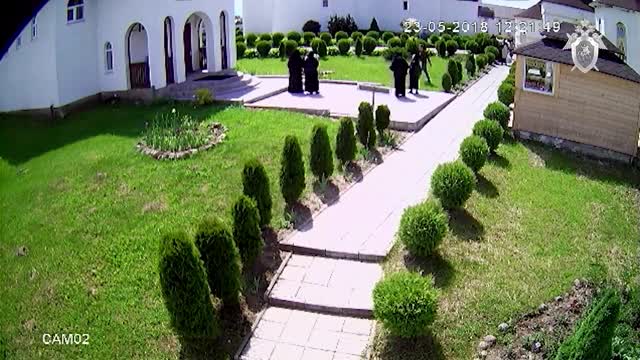Как видно на кадрах видео, обнародованного ведомством, полуголый мужчина напал на монахинь на территории монастыря у входа в храм.