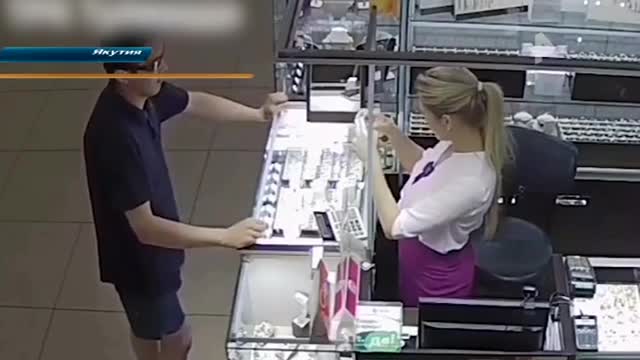 Как только она демонстрирует украшение, вор выхватывает изделие вместе с выставочной подставкой и бросается наутек. Задержать злоумышленника пока не удалось.