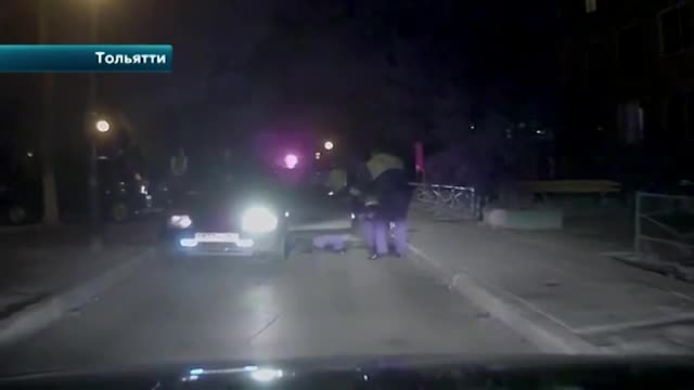На узкой дороге беглец не смог объехать встречную машину и оказался заблокирован. Этим воспользовались автоинспекторы — они бросаются к двери, пытаются вытащить водителя, но тот начинает резко сдавать назад. Один из полицейских даже чуть под колеса не попал.