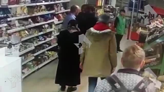 По некоторым данным, двое злоумышленников попытались вынести из магазина продукты, у кассы их попытался остановить охранник. Один из мужчин мощным ударом повалил его на пол.