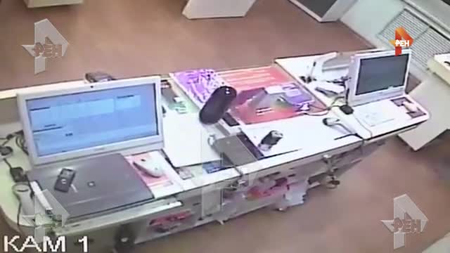 Видео: двое грабителей с пистолетами устроили налет на салон связи в Петербурге