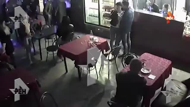 Трое мужчин избили охранника бара в Челябинске. В распоряжении РЕН ТВ появилось видео с камер наблюдения, на котором запечатлена потасовка.