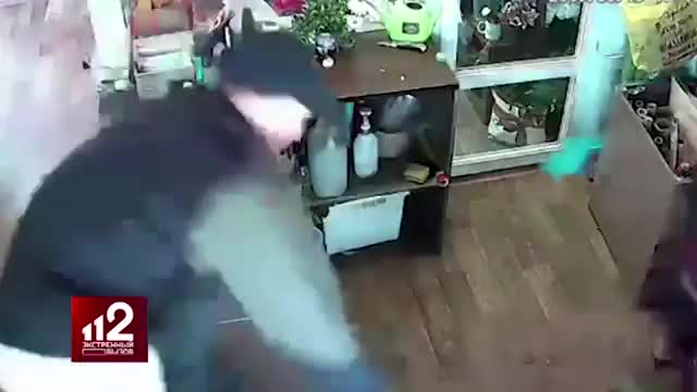 Перепуганная девушка, конечно, никак не может дать отпор, вжимается в угол и не мешает преступнику. Уже по опыту он уверенно перепрыгнул через стойку и сразу обчистил кассу.