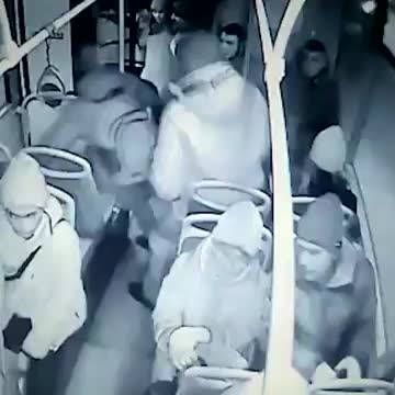 Спустя некоторое время пассажир хватает кондуктора за шею, валит его на сиденье и несколько раз сильно бьет кулаками, а затем убегает.
