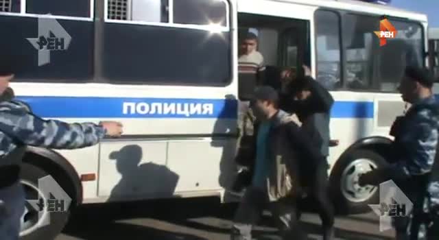 ОМОН Нацгвардии заставил участников побоища на Хованском кладбище ходить строем. В распоряжении журналистов РЕН ТВ оказалось видео, на котором запечатлены задержанные мужчины. Полицейские без применения оружия построили участников драки, посадили их в автозаки и отправили в отделения полиции.