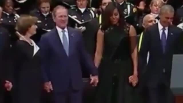 Джордж Буш приплясывал на панихиде по погибшим в Далласе полицейским