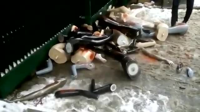 На территорию британского посольства в Москве подбросили огромную фигуру голубя мира, сделанную, предположительно, из пенопласта, которая была обмотана колючей проволокой, проткнута стрелами и облита красной краской, которая символизировала кровь.