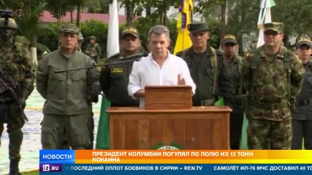 Президент демонстративно давил брикеты с кокаином, а потом с трибуны объявил о новом рекорде. Полиция изъяла партию весом в 12 тонн! Это большой прорыв для Колумбии, которая уже 40 лет ведет войну с торговлей наркотическими веществами.