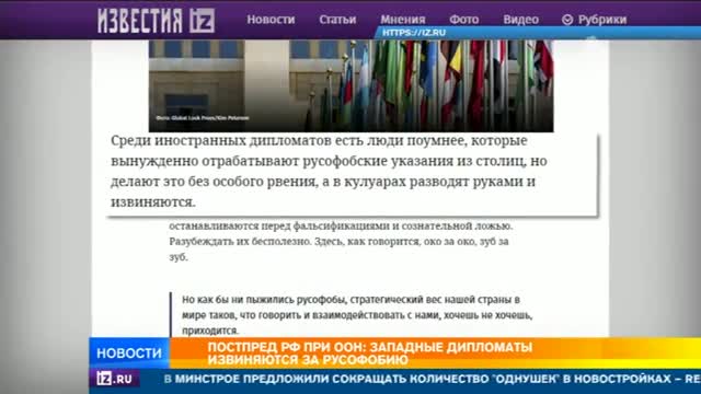По словам дипломата, русофобия стала заразной болезнью западных правительств, однако многие его коллеги вынужденно выполняют русофобские указания своих столиц, но потом извиняются за это в кулуарах.