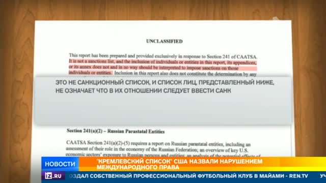 Ранее в США обнародовали так называемый кремлевский список, в который вошли 210 имен российских чиновников, бизнесменов и политиков.