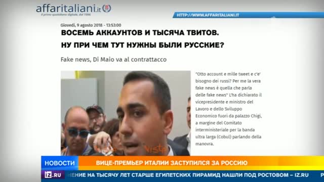 Луиджи ди Майо обрушил свой гнев на те издания, которые штампуют статьи-ужастики об интернет-троллях из Москвы, якобы распространяющих так называемые "фейк ньюз", то есть откровенную ложь. Ди Майо назвал главным информационным подлогом как раз-таки сочинение подобных сказок.