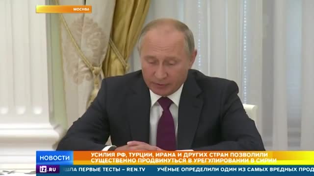 "Благодаря усилиям наших стран с привлечением других заинтересованных государств, в частности, имею в виду Иран, наше сотрудничество с Организацией Объединённых Наций, с европейскими странами, Соединённым Штатами, удалось серьёзным образом продвинуться по урегулированию сирийского кризиса", - заявил Владимир Путин.