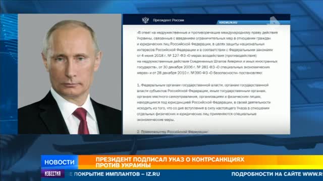 Ответ Киеву: Путин подписал указ о контрсанкциях против Украины