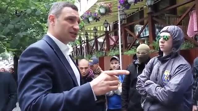 Мэр Киева пытался вразумить молодых неонацистов, которые сегодня устроили митинг в центре Киева.