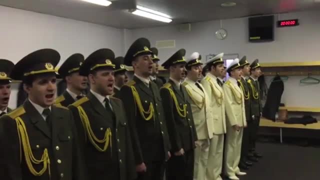Солисты Хора русской армии, выстроившись в раздевалке, поют песню рэпера НоГГано, он же Баста, "Девочка моя". Видеопоздравление для 37-летнего Василия Вакуленко появилось в YouТube.