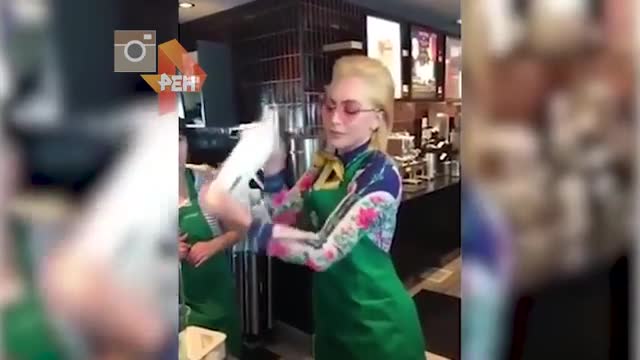 Американская певица Леди Гага встала за прилавок одной из кофеен сети Starbucks. На протяжении всего дня она наливала людям кофе и смешивала молочные коктейли. Видео с "новой работы" Гаги появилось в Инстаграме.