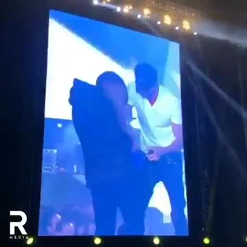 На многочисленных видео, сделанных зрителями, видно, что во время концерта к Иглесиасу на сцену проникла девушка с рисунком. Получив подарок, певец целует ее, после чего девушка уже не отпускает музыканта.