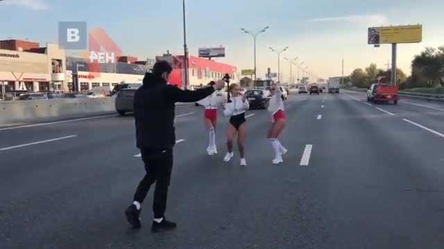 Танцевальный коллектив вышел на кольцевую дорогу ради съемки клипа.