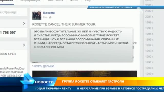 В рамках тура Roxette должны были приехать в российскую столицу, однако теперь музыканты так и не выступят в Москве.