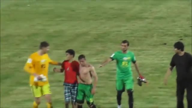 Болельщик выскочил на поле уже после окончания игры и хотел попросить футболку одного из игроков, однако секьюрити решили грубо выпроводить нарушителя с газона.