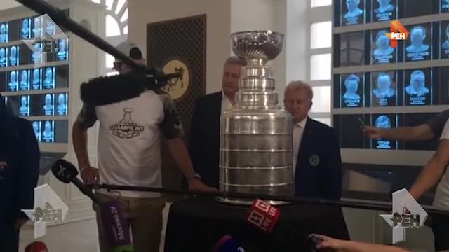 Нападающий "Питтсбурга" Евгений Малкин привез в Москву Кубок Стэнли. Трофей "Пингвинз" представили на обозрение желающим.