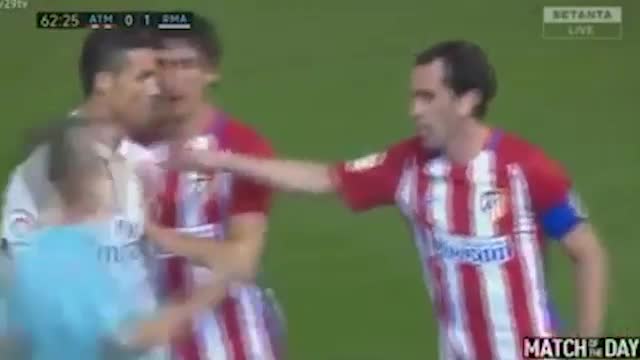 На кадрах видно, как после игрового эпизода Роналду вступает в эмоциональную полемику с игроком "Атлетико" Коке.
