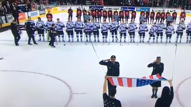 В Сети появилось видео фиаско организаторов хоккейного матча 4-го тура группового этапа молодежного чемпионата мира по хоккею. После поединка сборных США и Канады, в котором победили американцы, должна была состояться традиционная церемония исполнения гимна в честь команды-победительницы.