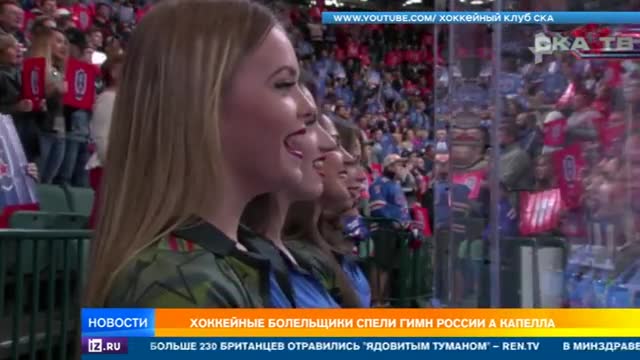 В Санкт-Петербурге 11 тысяч хоккейных фанатов исполнили гимн России, когда у организаторов возникла техническая заминка. Перед началом игры клубов "Витязь" и СКА трансляция неожиданно оборвалась.